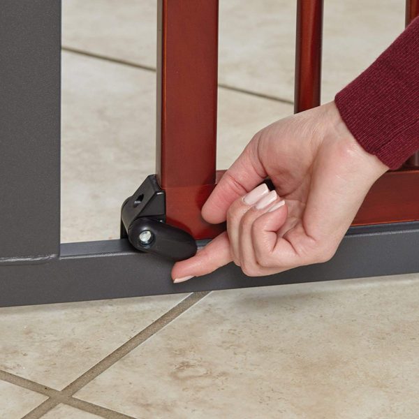 You’ll be happy to know that these gates are expandable to fit spaces from 29½ to 38 inches wide. Additional extensions can be purchased separately to fit an entryway with a maximum width of 54 inches. The one-handed, safe and secure spring-loaded latch allows you to operate the 19-inch-wide door ease. And the door swings in both directions for ultimate convenience. Simply slide the latch release back, lift, and open.