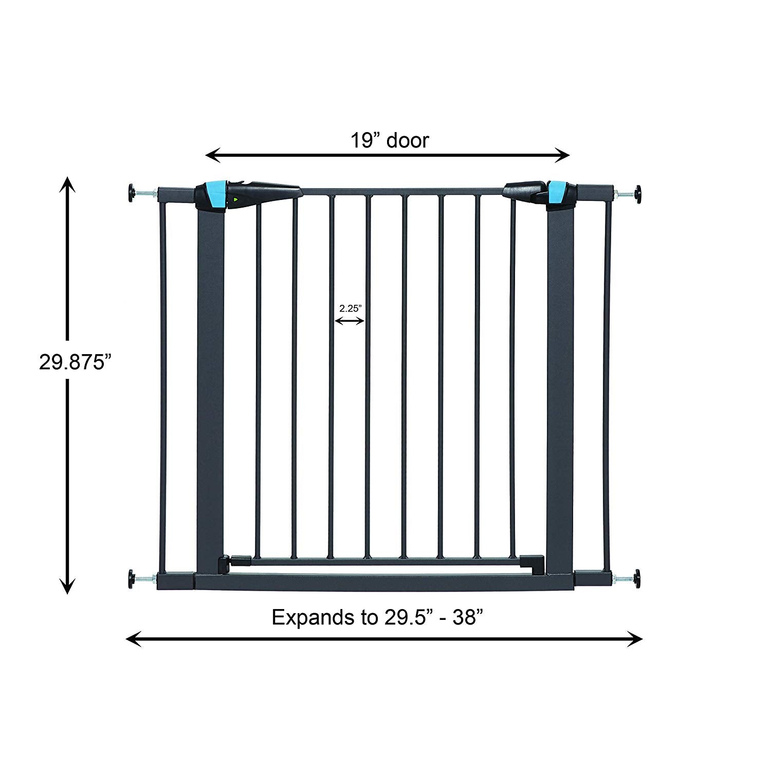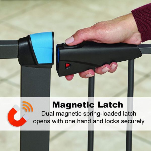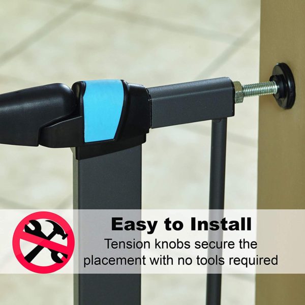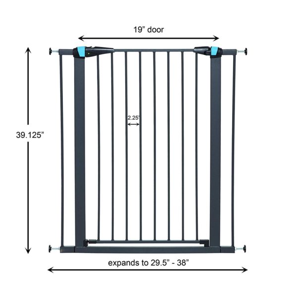 You’ll be happy to know that these gates are expandable to fit spaces from 29½ to 38 inches wide. Additional extensions can be purchased separately to fit an entryway with a maximum width of 54 inches. The one-handed, safe and secure spring-loaded latch allows you to operate the 19-inch-wide door ease. And the door swings in both directions for ultimate convenience. Simply slide the latch release back, lift, and open.